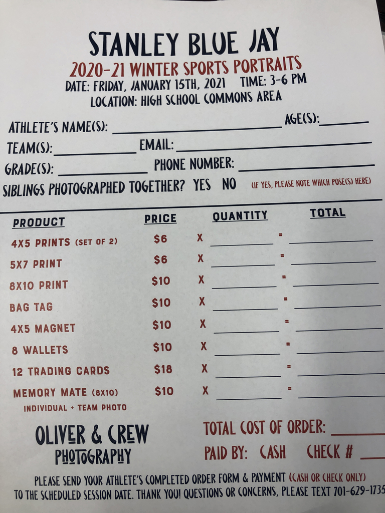 Contact Stanley Elementary School to sign up 701-628-2422